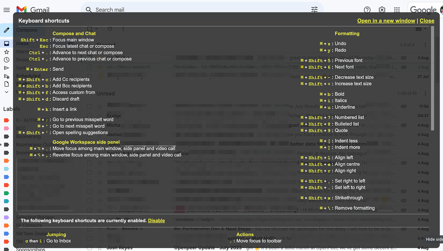 Firstly, press “?” on your inbox and you get the full overwhelming wealth of every single shortcut that exists in your inbox.