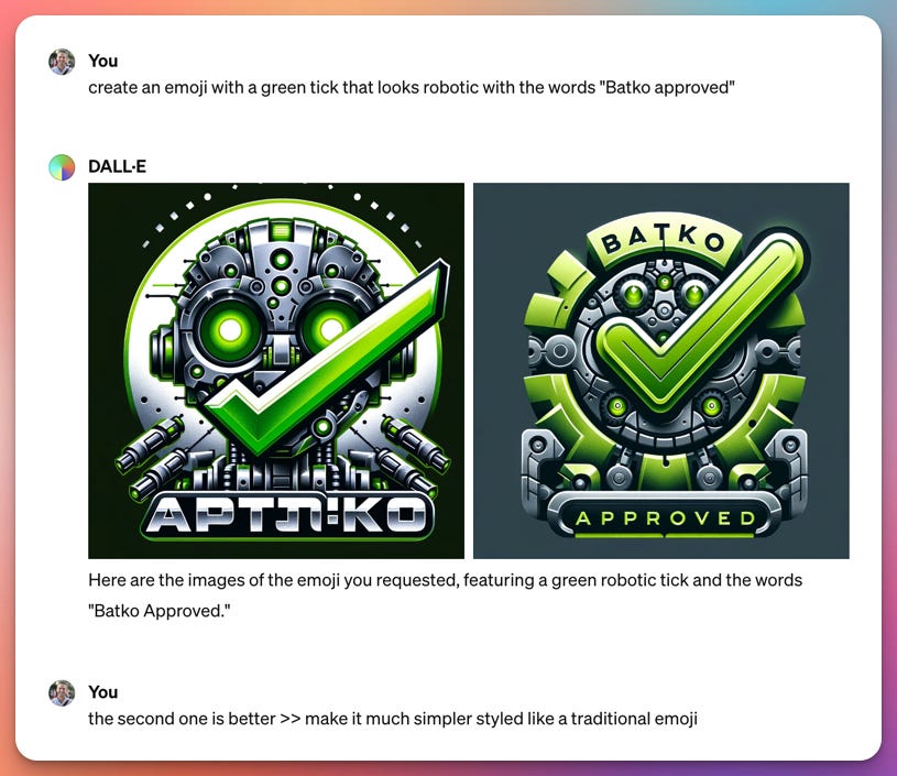 Make your own emoji, picture, visual, graphic - whatever you want to and keep prompting ChatGPT until you’re happy.