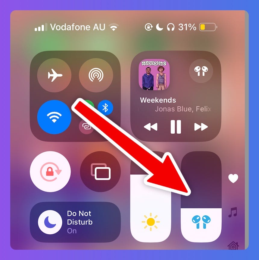 Long tap - volume (whilst connected to your Airpods)