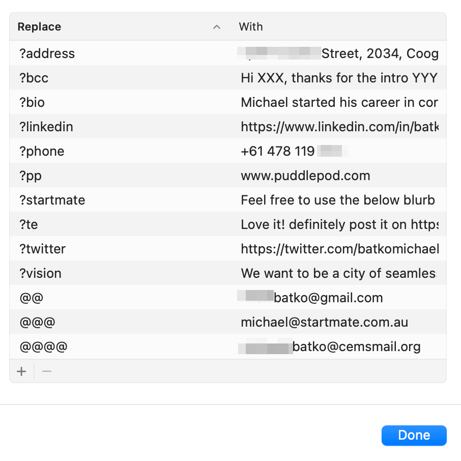 use a “?” before the shortcut phrase without a space, as you never use that when you’re typing so you don’t hit your shortcut by mistake.