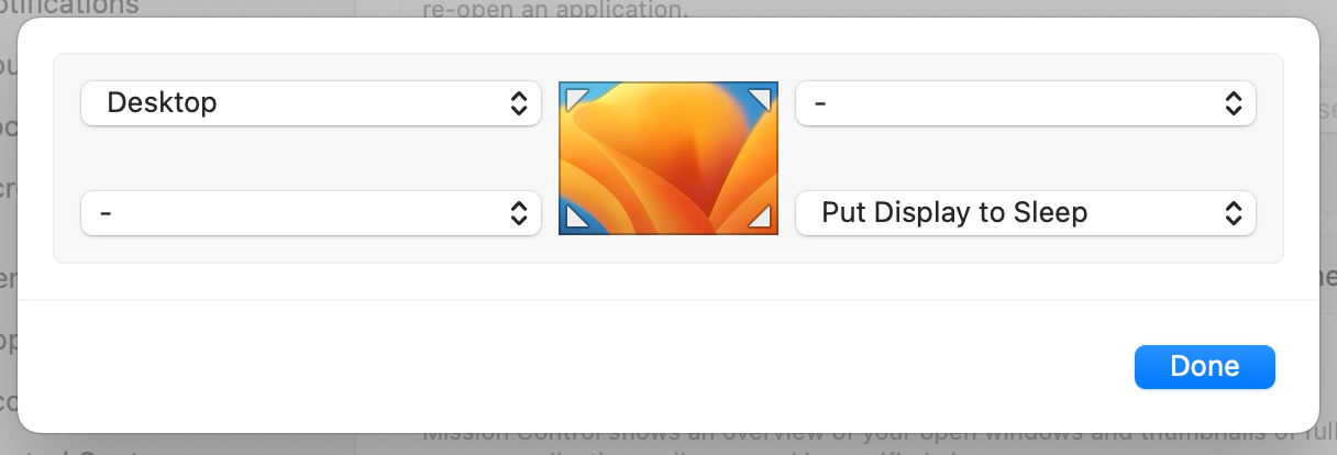 Hit the bottom right corner - put my laptop to sleep, great for coworking spaces and offices to not get trolled with someone taking over your laptop.